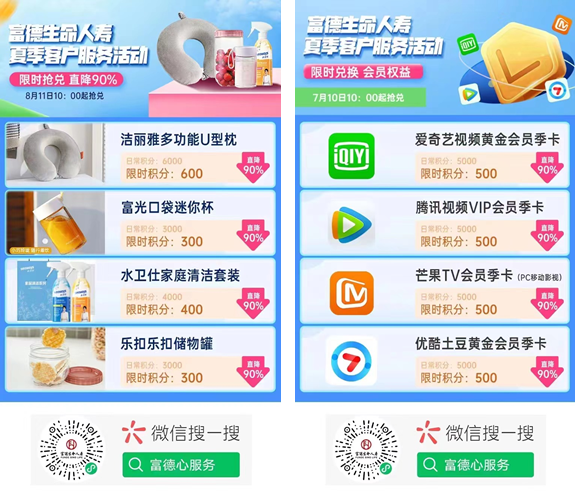 近期,富德生命人壽VIP服務(wù)煥然上新,九大服務(wù)項(xiàng)目重磅升級(jí),客戶可通過“富德心服務(wù)”線上增值服務(wù)平臺(tái)體驗(yàn)和使用更豐富的服務(wù)權(quán)益,如尊享體檢、出行禮遇、精英教育等。而在夏季客戶服務(wù)活動(dòng)期間,“富德心服務(wù)”平臺(tái)精心推出積分權(quán)益升級(jí)活動(dòng),5倍步數(shù)積分兌換次數(shù)超47萬,客戶在平臺(tái)可享最低一折的商城精選禮品限時(shí)積分兌換。